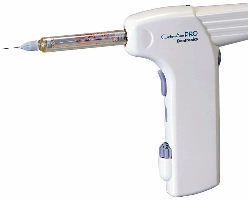 電動注射器を使えば、細い針でもゆっくりと麻酔液を注入することが出来るので、麻酔時の痛みを少なくすることが出来ます。