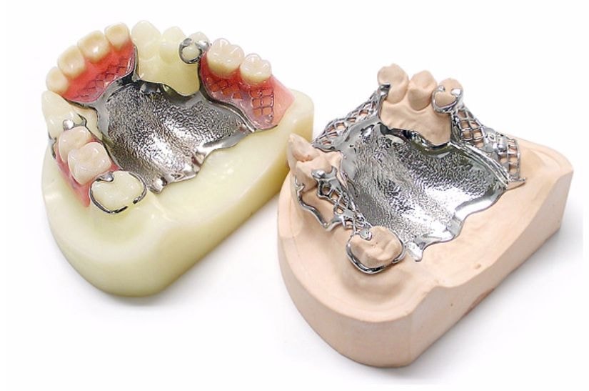 留め金があり、残っている歯を取り囲むようにして入れ歯を固定するため、歯の状態によっては、笑ったときに見えたり、多少口の中で違和感があります。