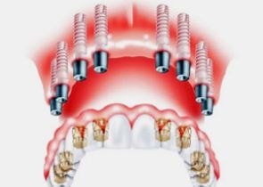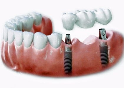 複数本欠損している部分にインプラントでブリッジを作り、連結歯を形成する対処方です。