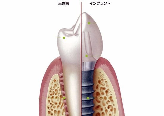 インプラントとは、顎の骨に人工歯根となる金属を埋め込み、その金属を土台にして、天然の歯と同じような人工の歯を取り付ける治療方法です。